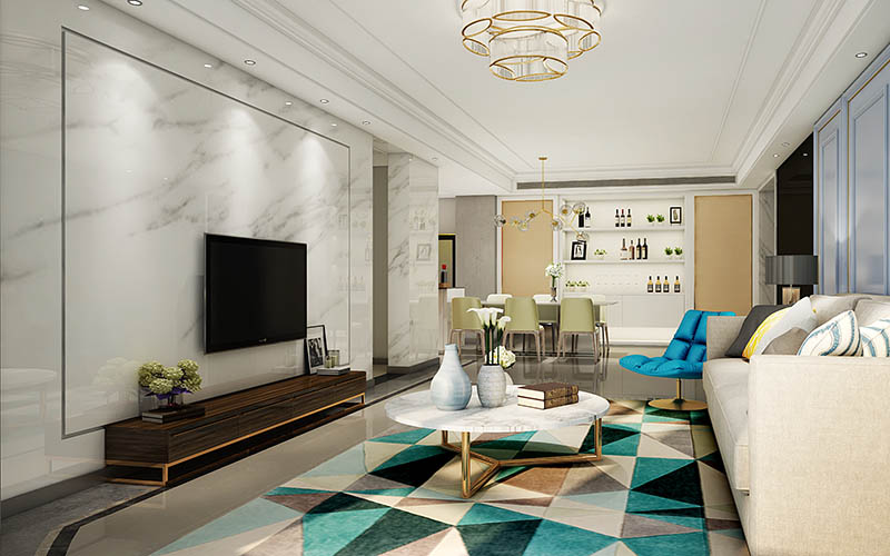 陶瓷贴面类主要用于厨房、卫生间的墙面,常用贴面砖有瓷瓦、陶瓷锦砖、玻璃锦砖(玻璃马赛克),大理石等;大理石贴面费用较高,家庭装修多用于客厅电视背景墙装饰,其他空间墙面装饰较少采用,瓷砖、石材质地坚硬,耐水、耐污染、卫生易清洗,用于墙面装饰清新美观又大方,其缺点是块状贴面材料缺乏整体性,施工效率较低,易脱落。