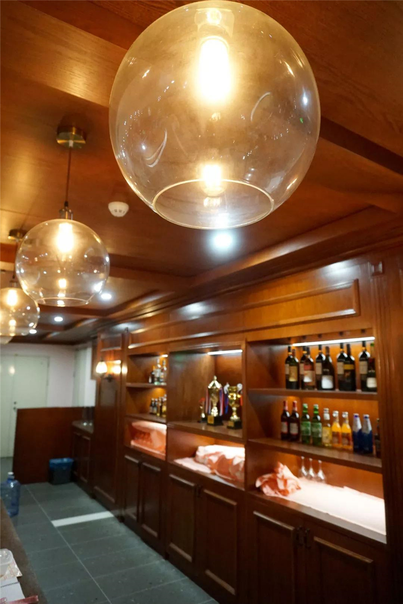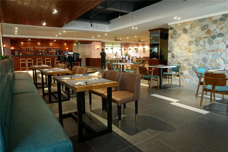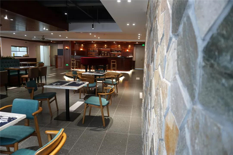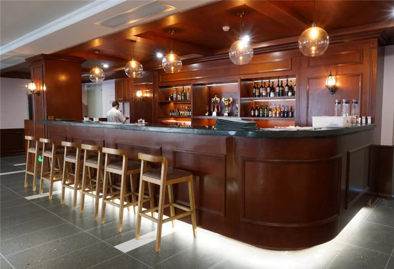 万年青大理石应用在吧台台面,搭配原木吧台凳,将成为最活跃空间互动平台,杯觥交错中解读中西共融的哲理。