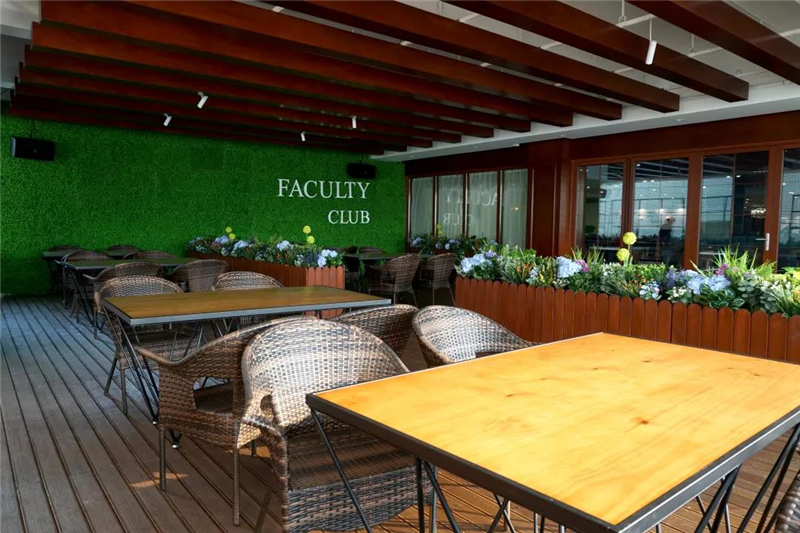大面积的绿植墙与各类花束包围的露台休闲区,将人与自然间的对话空间以最大程度释放。燕子铺后山的荔枝清香,敌不过紫红色霞光中咖啡的香醇,令工作中紧绷的神经瞬间得以放松。抬头眺望,满眼郁郁葱葱,疲惫的心在此寻找片刻宁静与惬意!