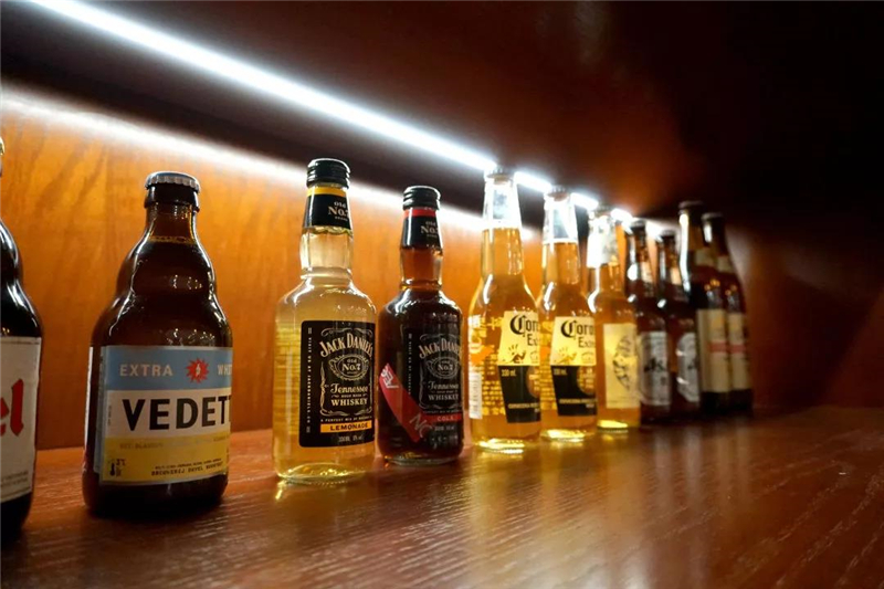 深灰色的仿水磨石地砖搭配白色拼花衬托着整个空间的复古气质,毫无违和感;天花局部空间使用实木板装饰,仿佛带回上个世纪的不列颠街头酒吧。