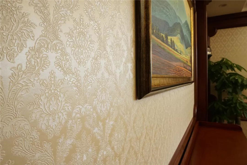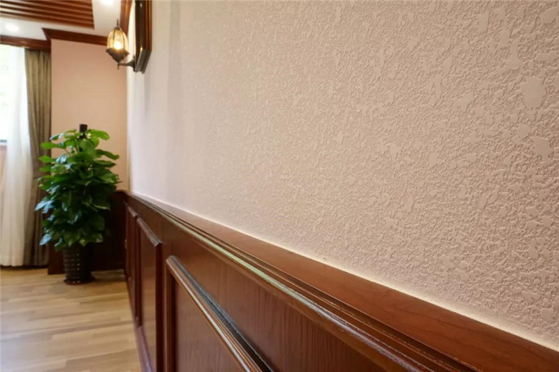 铁艺栏杆欧式卷草纹样及地毯图案、仿古文化石、硅藻泥墙面、原木西式桌面、美国红橡护墙板等的应用,端庄与从容的背后,不难感受到设计师温情的一面。