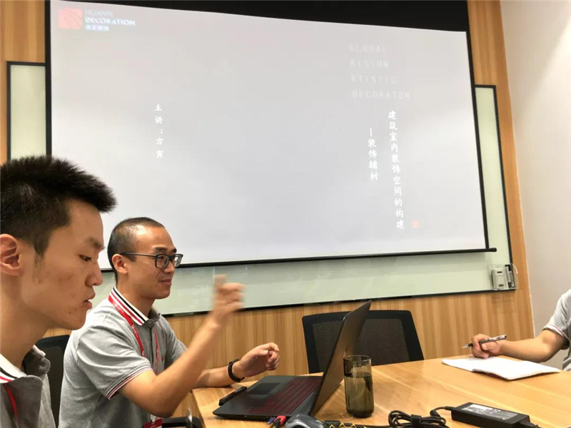 2019年7月27日上午10:00,在珠海环艺装饰设计部开展了《装饰空间辅材的了解与应用》分享会。本次分享会由设计部经理方寅主讲。