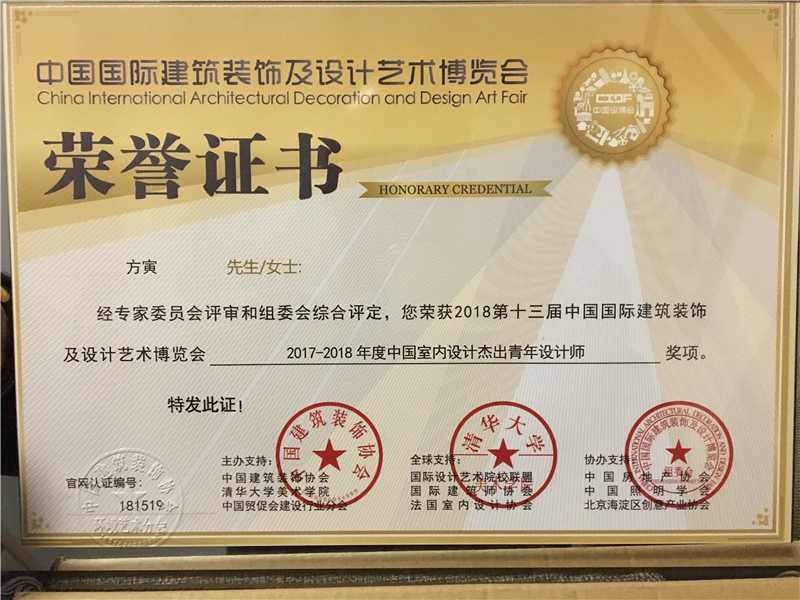 设计师方寅荣获2017-2018年度中国室内设计杰出青年设计师
